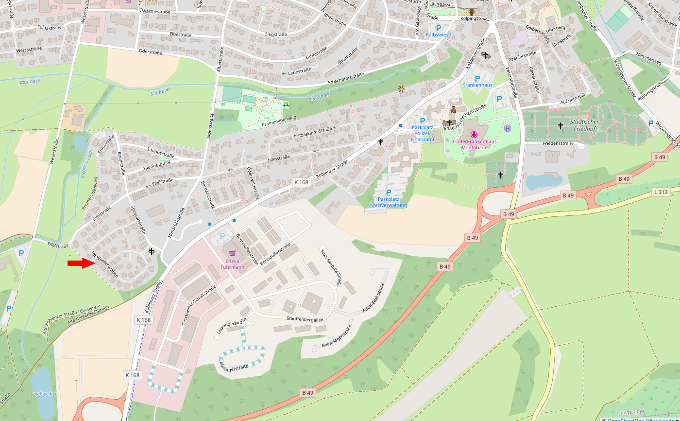 Flur- und Straßenbezeichnung. Frühere Gewässerzuleitung zu den Löschteichen und Wasserspeichern an der Koblenzer Straße (auf dem Gelände des alte Krankenhauses). Der Wassergraben lief von der Höhe des Spießweihers westlich parallel zur Koblenzer Straße durch den heutigen Promenadenweg.