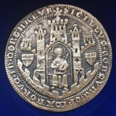 Die Petrusplakette wird künstlerisch gestaltet und als Medaille in Silber geprägt. Die Vorderseite zeigt das Siegel der Stadt Montabaur mit der lateinischen Umschrift: SIGILLVM CONMVNE OPIDANORUM IN MONTHABVR."