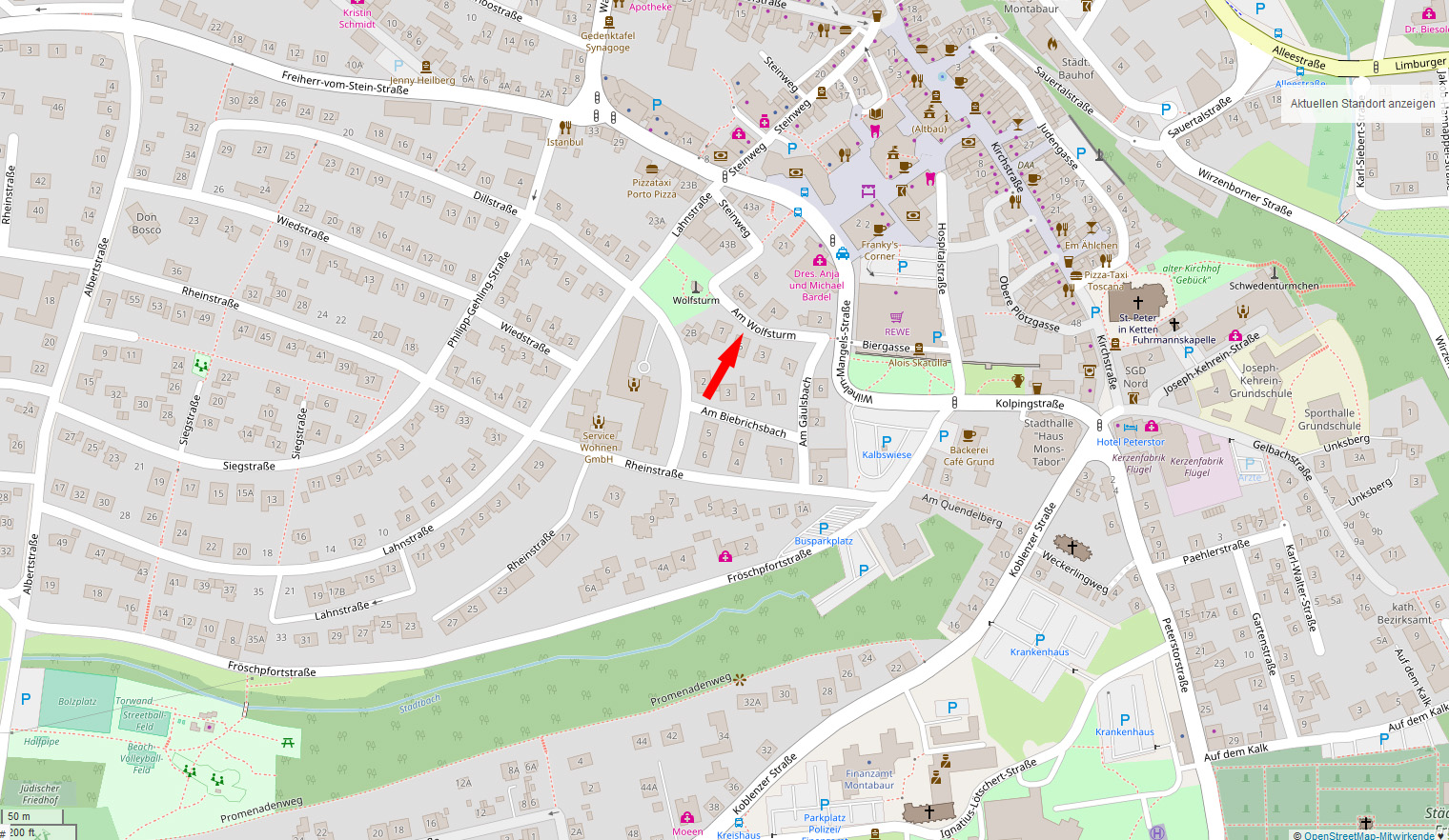 Im Südwesten der Altstadt erhebt sich weit sichtbar das markanteste Bauwerk der ehemaligen Stadtbefestigung, der sogenannte „Wolfsturm“. Der rund 20 Meter hohe Turm, bis zur Höhe der ehemaligen Stadtmauer in dreiviertel runder Form gegründet, umfasst zwei Stockwerke. Die Bauzeit wird in die Mitte des 14. Jahrhunderts zu datieren sein, als in Folge der Stadtrechtsverleihung eine Stadtbefestigung mit Mauern, ca 15 Türmen und Tor-Pforten, angelegt werden konnte.